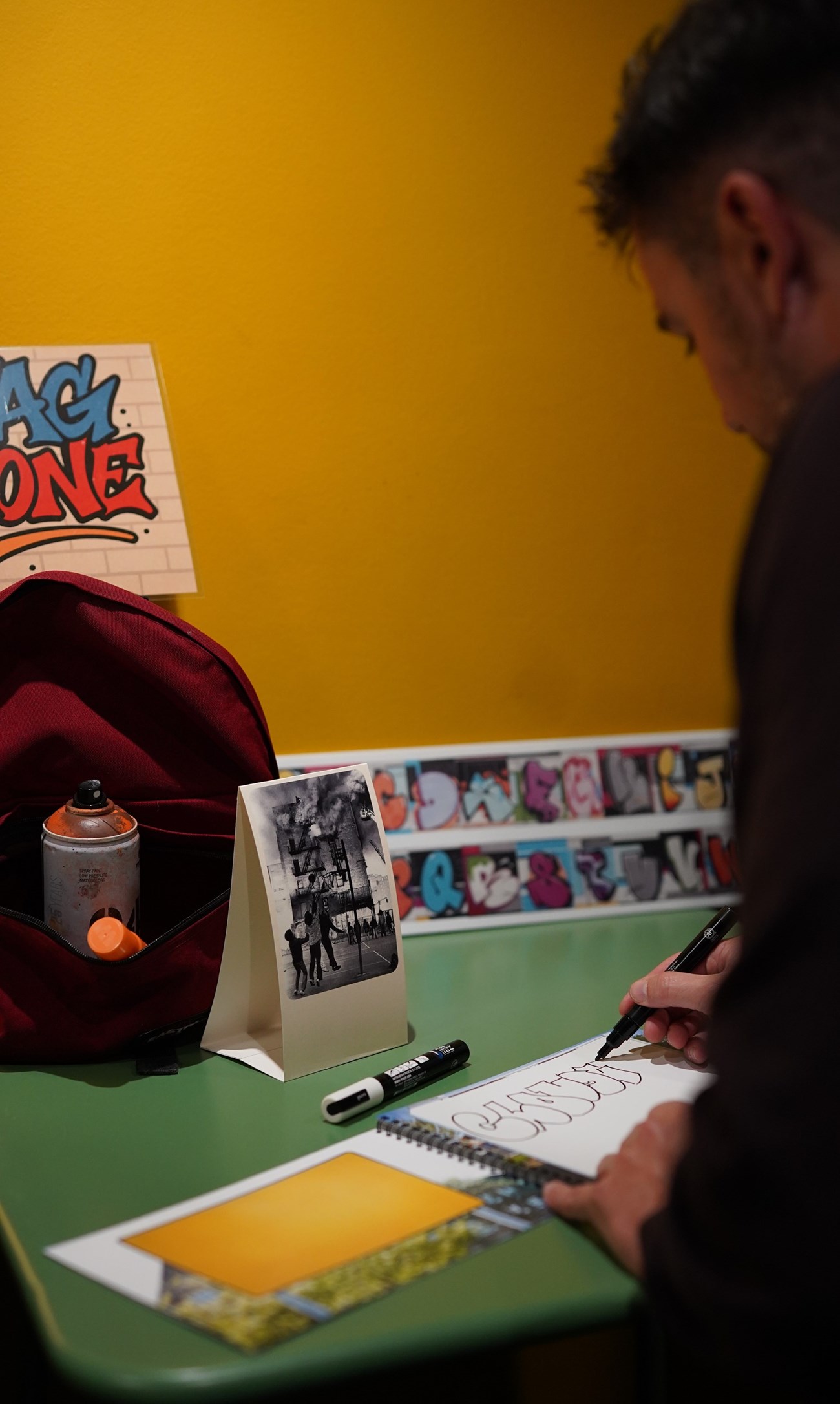 Nous nous sommes retrouvés chez Jimmy Osteria pour un moment convivial autour de quatre œuvres et d’un verre. Dans une atmosphère intimiste et chaleureuse, des objets d’époque soigneusement sélectionnés plongeaient les participants dans une immersion totale, révélant ainsi l’univers vibrant de la culture urbaine.